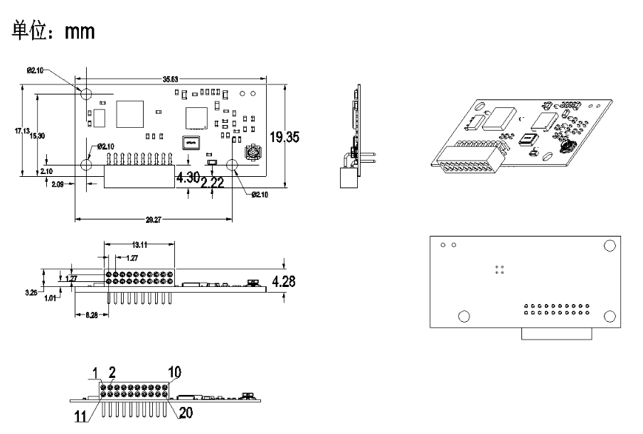 ?  小體積 36X19MM,20 PIN 雙排插座封裝,安裝方便