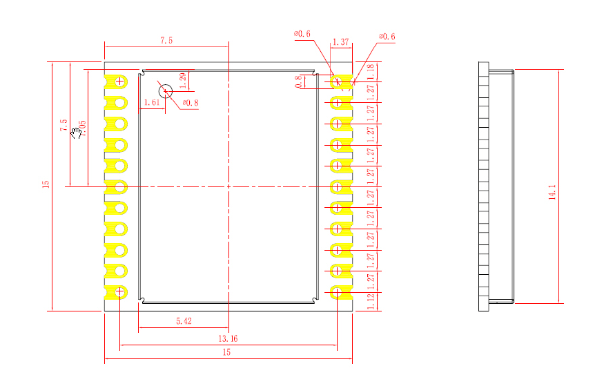 EL1669D是一款采用源自軍用戰(zhàn)術(shù)通信系統(tǒng)的LoRa調(diào)制技術(shù)設(shè)計的模塊,完美解決了小數(shù)據(jù)量在復雜環(huán)境中的超遠距通信問題,默認頻段為433MHz。 EL1669D是高性能低電流的收發(fā)模組,采用SX1278內(nèi)核設(shè)計,包括完整的發(fā)送器和接收器。接收靈敏度為-148dBm,最大輸出功率+20dBm,支持(G)FSK,OOK調(diào)制方式,相較傳統(tǒng)調(diào)制技術(shù), EL1669D模塊在抑制同頻干擾的性能方面也具有明顯優(yōu)勢,解決了傳統(tǒng)設(shè)計方案無法同時兼顧距離、抗擾和功耗的弊端。另外,芯片集成了+20dBm的可調(diào)功率放大器,可獲得超過-148dBm的接收靈敏度,無線性能達到了行業(yè)領(lǐng)先水平,對于遠距離傳輸且對可靠性要求極高的場合,該方案是不二之選。 模塊將SX1278的所有引了出來,用戶可根據(jù)不同的應(yīng)用靈活使用它們。為保證產(chǎn)品的穩(wěn)定可靠性能,在設(shè)計過程中,我們對射頻方面的性能做了全面、長期的測試;生產(chǎn)上,選用了高頻板材和頻射專用元器件來保證產(chǎn)品的使用壽命。