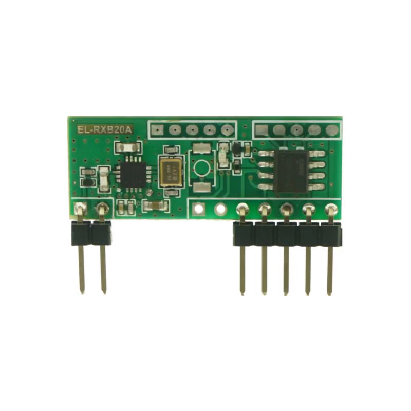 EL_RXB20A是超低功耗、高靈敏度、遠(yuǎn)距離通訊、高性價(jià)比的OOK 射頻接收模塊,適用于ISM 頻段無線應(yīng)用。具有抗干擾性好、可靠性高的特點(diǎn),即使在復(fù)雜干擾環(huán)境的情景使用,也不會對工作距離產(chǎn)生影響。該產(chǎn)品分為315MHz/433.92315MHz /868.3315MHz /915MHz四個(gè)工作頻率,板上集成MCU控制,支持滾動碼解碼,可存儲10組遙控器數(shù)據(jù),支持學(xué)習(xí)/清除模式,即可輕易實(shí)現(xiàn)無線產(chǎn)品的開發(fā)。主要應(yīng)用在遙控、家庭安全和告警、車庫和大門開啟、家庭自動化等